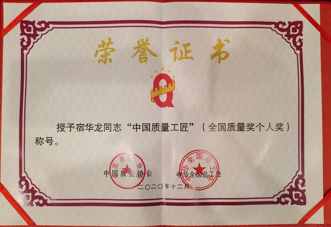 兵器工業(yè)集團(tuán)宿華龍榮獲第十九屆全國質(zhì)量獎(jiǎng)“中國質(zhì)量工匠”稱號(hào) |