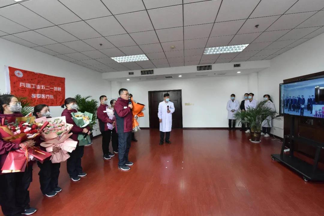 焦開河指出,面對突如其來的新冠肺炎疫情的嚴峻考驗,521醫院7名援鄂醫療隊隊員堅決響應習近平總書記和黨中央號召,肩負集團公司黨組和全集團23萬干部職工的重托,聞令而動、挺身而出,奔赴抗擊疫情第一線。援鄂期間,杭博、郭苓、緱豪兵、楊嬌4位同志,充分發揮了共產黨員的先鋒模范作用,呂戈、侯永生、曹利娜3位同志火線入黨,不辱使命、不負重托,出色完成了任務。7位同志的辛勤付出,充分體現了“把一切獻給黨”的人民兵工精神,體現了大愛無疆的醫者仁心,體現了集團公司大國頂梁柱的責任擔當,為黨旗爭了光,為集團公司添了彩。全集團廣大干部職工要學習他們的先進事跡,為奪取疫情防控和實現全年目標任務的“雙勝利”不懈奮斗!