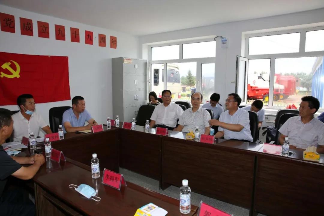 在興隆鄉(xiāng)新建村,焦開河聽取了大崗村、新發(fā)村和新建村關(guān)于農(nóng)機服務(wù)隊項目運行情況、收益和減貧的情況介紹,詳細了解了項目幫扶機制及未來發(fā)展想法。焦開河表示,農(nóng)機服務(wù)隊不僅實現(xiàn)了對貧困戶的幫扶,還可以通過創(chuàng)收、維護、解決就業(yè),帶動農(nóng)業(yè)機械化發(fā)展,是一個可持續(xù)項目。他強調(diào),下一步要整合好各村農(nóng)機服務(wù)隊,實現(xiàn)更大規(guī)模的連片種植。焦開河專門叮囑集團公司派駐大崗村第一書記吳寶明,要充分發(fā)揮駐村第一書記作用,抓好黨建工作,積極培育致富帶頭人,為大崗村后續(xù)發(fā)展奠定好基礎(chǔ)。