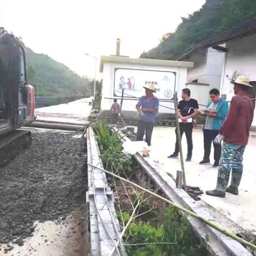 周紅濤(右二)檢查村莊修路情況