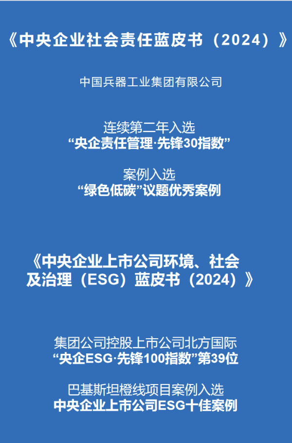 國有企業社會責任平行論壇現場發布了《中央企業社會責任藍皮書(2024)》《中央企業海外環境、社會及治理(ESG)藍皮書(2024)》《中央企業上市公司環境、社會及治理(ESG)藍皮書(2024)》等系列成果。其中,集團公司連續第二年入選“央企責任管理·先鋒30指數”榜單,集團公司案例入選“綠色低碳”議題優秀案例,所屬控股上市公司北方國際入選“央企ESG·先鋒100指數”第39位,巴基斯坦橙線項目案例入選中央企業上市公司ESG十佳案例